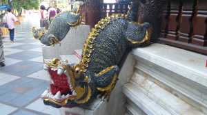 Don’t be put off visiting this beautiful temple because of the 309 steps…there is a funicular that takes you to the top easily. Our guide explained how the white elephant brought (some)the ashes of the Lord Buddha to this place, circled the top of the mountain three times, trumpeted three times and then fell dead! The ashes that were enshrined inside the temple makes this a very holy place for all Buddhists.