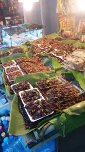 Cross the street from the exit and have a quick walk down the ‘merchant’ side of the street and see what the shops are offering. At the very bottom of the strip of merchant shops there is a shop that will catch your attention the edible bug shop… yes there are all kinds of bugs, beetles, and worms fried to perfection, crunchy, or ready to cook!