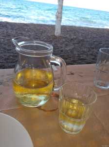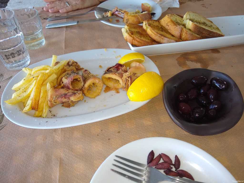 The thing with Tsiparou is that when you order a Tsiparou you get a couple of dishes of Metzedes, usually seafood of some variation, served with the drink. We usually order 2 Tsiparou and get 4 dishes of food. These are delicious morsels of seafood, beans, potatoes and olives to help calm the effects of the Tsiparou.